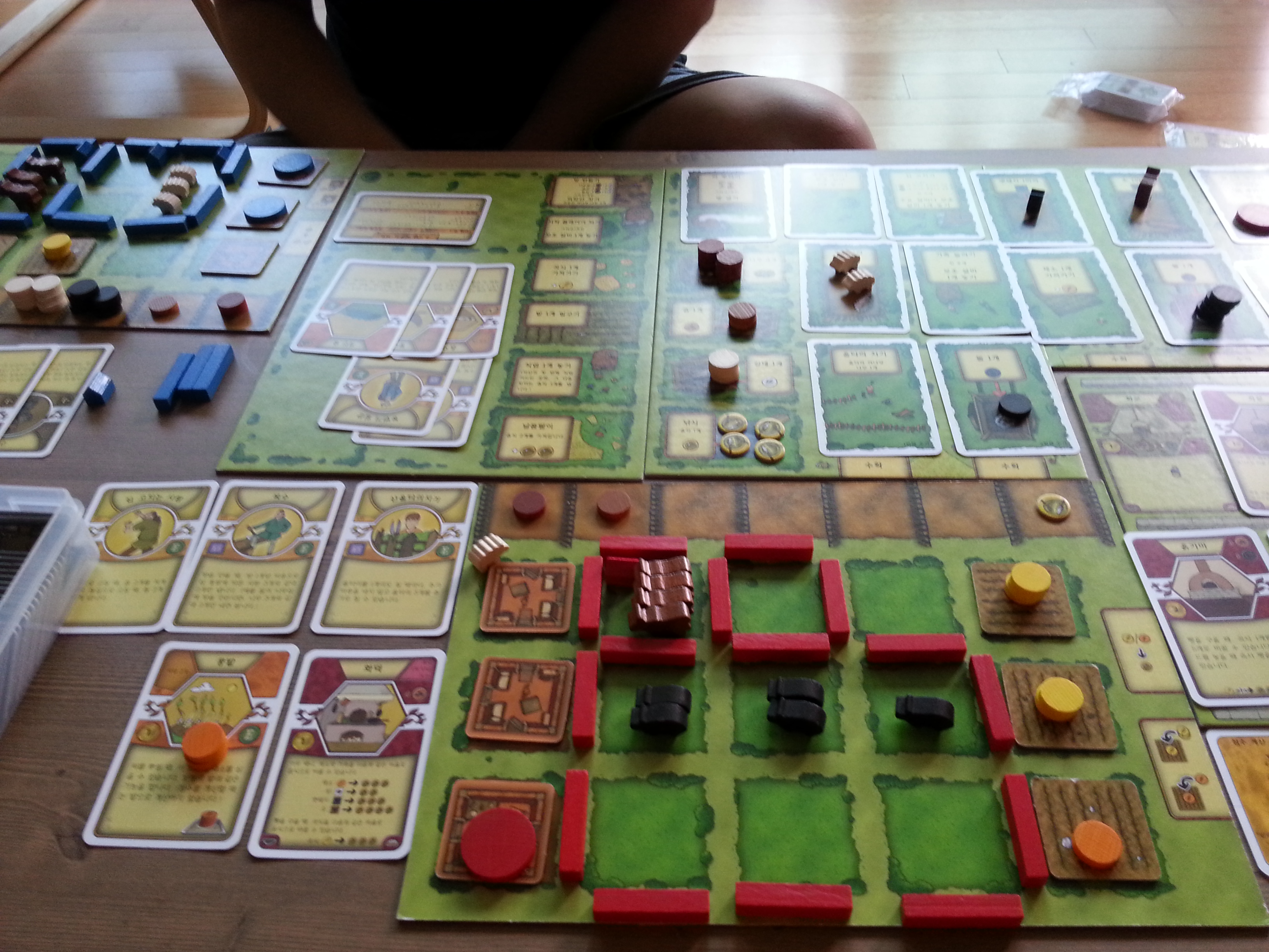 게임 보드(Game boards) 4개의 큰 농장 마당 보드(각 플레이어당 1개) 대형 게임 보드 1개 주요 개선 사항을 위한 공급 보드 1개 2개의 게임 보드 확장(득점 포함) 개요 및 (한 경우) 작업 공간 멀티 플레이어 게임) |