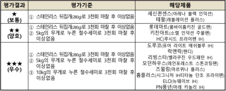 최근 한국소비자원이 시중에 유통되는 프라이팬의 코팅된 부분을 철 수세미로 3,000번 긁어 실험한 후 가성비가 좋은 프라이팬을 소개했다.